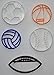Includes: 3.25" Baseball Cap, 4.5" Baseball Bat, 3.75" Baseball Glove, 3.5" Football, 4.5" Football Helmet, 4" Sneaker, and 2.5" Ball/Circle