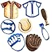 CONVENIENT SIZE. Baseball is 3" in diameter, bat is 4" x 1.25", mitt is 3.5" x 3", and jersey is 3.25" x 4"