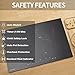 Safety Features for Peace of Mind: The cooktop includes a safety cut-off feature that automatically turns off the cooktop if no power level is selected within one minute. The child lock ensures that the cooktop remains locked and prevents unsupervised heating. Plus, the overflow protection automatically shuts off the power if liquid boils over or a wet cloth touches the control panel.