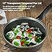 【Dishwasher and Oven Safe】The glass lid for smooth finish, pretty easy to wash by hand with effortless, also dishwasher safe helps to save time as well. The black knob lid match all the kitchen cooking pans nicely, you can enjoy the flexible lids for boiling, frying, steaming, stewing...just one 12" cover for all your kitchen pans.