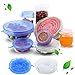 Multipurpose Silicone Lids - 5-pack silicone bowl covers have 5 colors including yellow, orange, green, red and blue. 5 different sizes of suction seal covers fit most food containers such as cups, mugs, plates, pots, bowls, dishes, skillets, pans, etc. (4, 6, 8, 10, and extra-large 12-inch food cover lid option). Ideal for cooks, foodies, housewarmings, holidays, and parties.