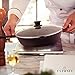 COMFORTABLE, OVEN-SAFE SILICONE KNOB: Easy-grip silicone and Bakelit handle resists heat for quick cooling and comfortable non-slip grip. Flat top of knob allows you to stand the lid upside down, effectively eliminating dripping moisture off the lid. Rust-proof screw keeps lid secured to the knob. Keep heat, moisture, flavor and nutrients in your pan or pot at all times. Lid circulates heat and steam to more evenly cook delicious meals.