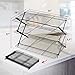 COLLAPSIBLE COUNTERTOP ORGANIZER: The rack folds up flat for convenient kitchen storage. It includes a wire mesh design to cool tiny treats and an additional support arm that locks into place to hold heavier goodies like cakes and pies.