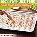 HALF SHEET BAKING RACK FOR OVEN COOKING: Commercial grade pure 100% 304 stainless baking steel wire rack for baking, roasting, grilling, broiling, smoking, & more. Our wire cooling rack has no artificial chrome coating, no flaking & no rusting.