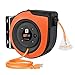 【 Yellow Cable Jacket 14 Gauge SJTOW Cord 】 The strong 14awg SJTOW retractable extension cord itself is flame retardant, tangle-free, and resistant to abrasion, water, oil, UV light, ozone, alkaline, and acid that you may find in a typical garage; keeps flexibility and durability in all temperature; the stark yellow PVC cover makes the cable very visible to prevent any accidental falls; for indoor or dry-location use only