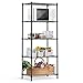 DURABLE WIRE SHELVING UNIT: The 5-tier metal storage rack is especially black coating-plated finish for protecting it from water, rust, or corrosion and making it easy to clean. There is no problem placing the storage shelves in the kitchen, living room, bathroom, garage, and more