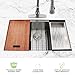 ★【Noise Isolation Expert & Designed for Easy Drainage】Heavy duty sound guard undercoating and 5 extra thick sound insulating rubber pads to minimize noise when the sink is in use. Anti-condensation coating can isolate condensation water, preventing damage to the cabinet while ensuring excellent noise reduction.The bottom X-shaped groove designed for easy drainage, keeping your kitchen sinks clean and dry.