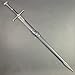 Design inspired by historic medieval styles. Two handed swords were known as war-swords in the early Middle Ages and used to destroy an opponent’s shield, shear through mail, and damage helms. They were called great swords during the High Middle Ages and the Renaissance. The blades tended to be slightly longer than regular swords, and capable of damaging full plate armor to the point where the opponent’s movements were substantially impaired.