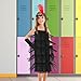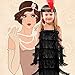 Delicate Girl's 20s Flapper Dresses Costume Set: the 20s flapper costume dress include 1 piece of black fringed flapper dress, 1 piece of black sequined headband with feather and 1 piece of black long glove