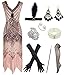 Package include : 1 x 1920S Sequin Tassels Flapper Dress , 1 x Long Satin Gloves; 1 x Pearls Bracelet ; 1 x Black Cigarette Holder ; 2 x Earrings ; 1 X Headband ; 1 x Feather Scarf ; 1 x Pearl Brooch ; 1 x Pearl Open Ring.