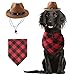 The pet cowboy cap is made of polyester with durability and lightweight , dog bandana is cotton, soft and comfortable to wear.