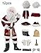 Complete 11pcs Christmas Santa Outfit Set Adults Men : Has everything you need to be Santa! Santa's red velvet pullover jacket; Exquisite plush pants with elastic; Red Santa hat with pompon; Black faux leather boot overs with white plush cuffs; Adjustable waist belt with buckle; A pair of gloves; Glasses; White wig and beard; Gold bell; Gold gift bag. All accessories will fully equip you to dress you up as a qualified Santa Claus. Washing Suggestion: Dry clean only