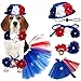 🌷【Flower Design Holiday Costume】The sequins pet hat, dog necklaces collar, tutu skirt and foot bows bands for Independence Day decorate vibrant red white blue flowers and handmade stars, brightly colored and full of vitality. Simple and complete American flag dog dress up supplies set design. It doesn't need to buy other costume accessories separately.