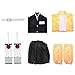 PACKAGE INCLUDE: dress*1, black coat*1, belt*1, belt rope*1, calf wear*2, hair accessories*2, mouthpiece*3. Wear them exactly like the character. MATERIAL;polyester.