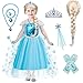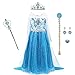 DREAMY FROZEN DRESSES FOR GIRLS - Our Elsa frozen dress set contains one blue tulle cape sequined elsa dress for girls, a beige simulation wig, a blue crown, a cane, a pair of gloves, a necklace bracelet ring set. A whole set of outfits is super cute, blue princess dresses are great gifts for girls!