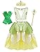 Princess Frog costume for girls Tiana dress,suitable for 3-8 years,package includes:1*dress+crwon+wand+gloves; Note: The seller has improved the back material of dress to make it elastic and not easily damaged!