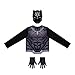 DETAILED DESIGN WITH ATTACHED MASK- This shirt features a detailed Black Panther costume design, including an attached hood and mesh character mask