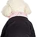 Sock hop lady pet costume features striped dress with pink poodle skirt and matching costume headpiece with soft pink fabric and bow