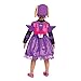 SWEET DESIGN: Give your toddler a sweet cat look with this costume that features a pink and purple dress with attached tail, cat ears headband, faux fur glovelettes, striped footless tights, and heart choker