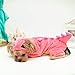 Great Dog Costume Features: Pink/Green Dinosaur designs, which looks cool and pretty. Fastener closure adopted instead of button, so it's very easy and convenient to let your pet put on and off.