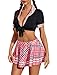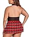 Package Content: 1 x Plus Size Bodysuit with Tie, 1 x Short Plaid Skirt
