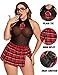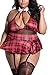 💗Sultry Design: Featuring a plunging neckline with red plaid print cups, a collared neck tie that adds a touch of naughty sophistication, and a sheer mesh bodice that leaves just enough to the imagination, this teddy set is sure to turn up the heat in the bedroom.