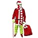 Green Fursuit Santa Costume 9 in 1 Set Included: Red polyester santa jacket + Green furry pants + Green fur gloves + Latex mask with hat + Black belt + Red Velvet Socks + Red magic bag + Soft Scarf+ Scepter