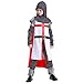 Design: Knight Costume has a tunic with cross detail, pant, cape, hat.