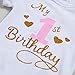 Romper Features: Short sleeve o-neck romper printed with letter " My 1st Birthday” at front. Bodysuit lapped shoulders for easy on/off over baby's head, 3 snaps on the romper crotch for changing diaper conveniently. Super cute bling design homewear playwear, fits for baby girls, little sister or brother matching family clothes photography shooting costume