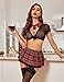 Package Content: 1 x Sexy Costume Lingerie Set for Women( Mesh Crop top + Plaid tie + Plaid pleated mini skirt) Note: This set doesn't include G-string.
