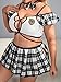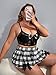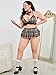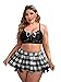 Features: plus size, 3 pieces, plaid print, bralette, mini skirt and choker, no padding