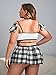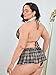 Features: plus size, 3 pieces, bralette, mini skirt and headband, plaid print, floral lace, criss-cross back, no padding