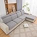 MATERIAL: 85% Microfiber + 15% Spandex. This sectional couch cover set is made of high-quality and premium fabrics, which can feel thick in the hand. Solid color with striped jacquard, simple and elegant.