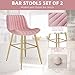 【Multi-scene Applications】Pink bar stools set of 2 come with open gold legs and pink velvet seating, which show a charming contemporary look. Kitchen, bars, shops and cafes,wherever being used in, these gold bar stools are perfect decors, adding brightness and vibrancy to your space.