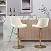 【Stable & Sturdy】- The top on our bar chairs set of 2 seats is rounder and wider to provide a comfier place to sit and rest, and the large golden metal base provide greater stability, and the sturdy metal frame can bear up to 250 pounds. Non-slip and anti-scratch rubber pads are placed under the white counter height bar stools set of 2 base to prevent floor scratching and reduce noise when swiveling.