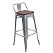 This barstool, with its metal Seat backing with a wood-like Finish, is a great addition for any kitchen or dining space. Featuring BLACK BRUSH Silver metal framework with an Antique Finish firewood Seat, this barstool is both rustic and chic.