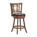 Padded 360 degree round swivel seat covered in brown faux leather upholstery