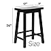 TWO SIZES: These dashing stools will add comfort and charm to your kitchen or bar area. Available in 24” counter stool or 30” bar stool heights. Seat dimensions: 16 1/2” Diameter Footrest height: 24” stool 8”, 30” stool 11.5”.