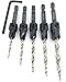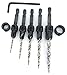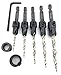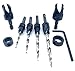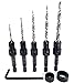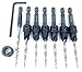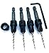Countersink drill bit set for wood with tapered drill bits High Speed Steel M2. Wood countersink bit with wider flute shape for increased chip flow. Drill countersink set has logo brand name laser printed on each countersink bit quick change 1/4" hex shank. Professional countersink drill bits set with tapered drill bit with countersink for wood. Packaging set combination unique design protected by US Copyright Office