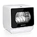 🛒【Compact with Large Capacity】The weight of this convenient dishwasher is only 28.6lbs, and the small size (17.7"L x 17.3"W x 18"H) makes it portable (fits dishes up to 12'' diameter at an angle). It’s compact feature is perfect for small space like apartments, dormitories, RVs and more, plug it anywhere you like