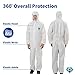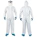 【Heavy-Duty Isolation Coverall with 360 Degree Protection】This one-piece white PPE coverall suit features an elastic hood, wrists, and ankles for a snug fit and reliable protection from liquid and particulate. The front zipper allows for easy on and off and the coverall provides full body coverage, shielding skin and clothing from dirt, dust, light liquid splashes, paint, and most mild chemicals and biological agents.