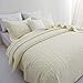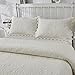 Subtle and chic design cream ivory bed quilt set,simple but elegant, neutral light cream color with unique floral embroidery, luxurious look definitely worth the price! Great match with any home decoration! Classy peaceful themed bedding, farmhouse style.