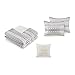 The ivory cotton comforter features horizontal stripes, in charcoal hues, with eyelash-looking woven details for sophisticated look.