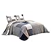 Features a beautiful cross-stitching pattern. Made with a blend of bamboo fabric and polyester for an ultra soft and breathable, lightweight, and versatile quilt coverlet.
