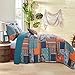 Our bedspread is accented with geometric diamond pattern stitching with hints of red, orange, and navy blue base shades.