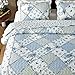 【Easy Care】The blue patchwork quilted bedspread&Coverlet set which makes the stitching smooth, fine, and compact, which prevents it from falling apart over time and ensures it washes well. Machine wash, tumble-dry low or sun dry. No Chlorine bleach or any additives.