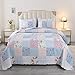【Material】Shell:100% microfiber | Fill:100% microfiber. Using soft light fabric, comfortable and lightweight bedspread set, perfect for all year round. This blue floral patchwork quilt set is reversible, both sides could be used individually. Coverlet set Includes: 1 Bedspread + 2 Pillow Cases.