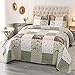 【Material】Shell:100% microfiber | Fill:100% microfiber. Using soft light fabric, comfortable and lightweight bedspread set, perfect for all year round. This patchwork quilt set is reversible, both sides could be used individually. Coverlet set Includes: 1 Bedspread + 2 Pillow Cases.