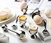 Soft Boiled Egg Topper - Each egg cup with spoon, along with the boiled egg shell remover, is made of durable stainless material. The unique and highly versatile design allows you to break soft and hard-boiled eggs or raw eggs with ease. These elegant stainless steel cups are perfect for dips, sauces and desserts. The egg spoons have the perfect shape, curve and length to comfortably scoop the delicious egg yolk out of your soft-boiled egg or enjoy other desserts.
