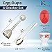 Multifunctional cups and spoons:the abundant number of stainless steel spoons and cups are enough for our daily use; They can not only hold eggs but also suitable for sauces, seasonings and desserts; The spoon is nice transfer device